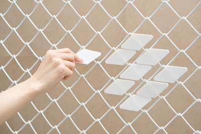 「インターフェンス」は、共和鋼業がつくるひし形金網(ネットフェンス)の視認性の高さや、ひし形という構造を生かしながら、デザイン的な価値を付加した製品です。ひし形金網に加飾(装飾)パーツを取り付けたり彩色したりすることで、屋内外の空間を仕切るだけでなく、気配を調節する、景観に馴染ませる/目立たせる、交流のきっかけをつくるなど、さまざまな価値を付与することを想定しています。