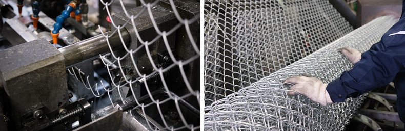 ひし形金網の製造の様子