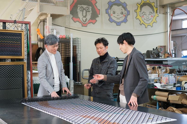 土生 さまざまな製品や利用方法を開発して、サービスとしての幅を広げていくつもりです。例えば、既存の古い金網をグレードアップできるとか、金網に加飾する作業を一般に開放してイベント化するとか。「色々な使い方ができるから、この仕切りはひし形金網にしようよ」という提案も出てくるでしょうし、これまで想定していないような用途やビジネスモデルが今後出てくるかもしれない。「インターフェンス」という製品を通じて、新たな価値を生み出していきたいですね。