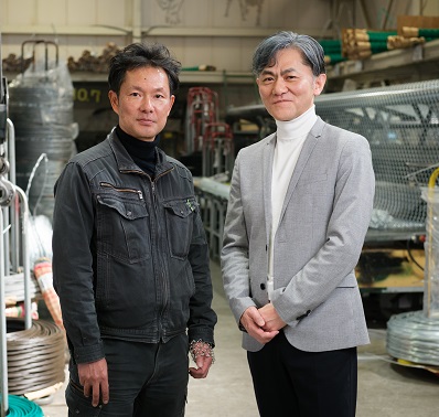 気配を伝えながら空間を仕切ることで、人と人、人と場、人と街に“緩やかなつながり”を生むネットフェンス(ひし形金網)「インターフェンス」の開発プロジェクトは、DNPと共和鋼業株式会社、近畿大学の3者で協業しています。プロジェクト発足の経緯やDNPとの協業の感想、今後の展望を、共和鋼業の森永耕治社長と、同社をサポートする株式会社IPディレクションの土生哲也さんにうかがいました。