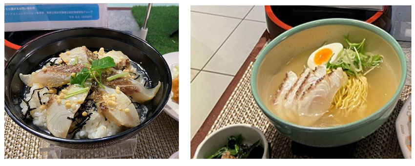 昆虫飼料で育った養殖マダイ(えひめ鯛)を素材にした鯛茶漬け600食と鯛塩ラーメン220食をDNPの社内食堂で3日にわたって提供したところ、3日間とも完売。