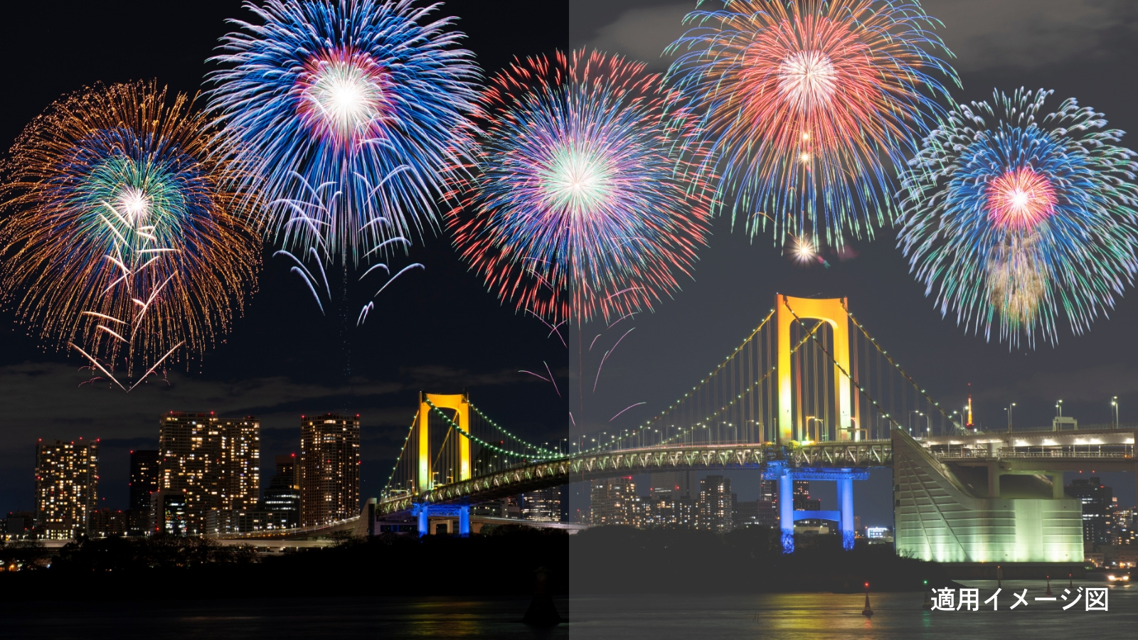 左:円偏光版あり 右:円偏光版なし(適用イメージ)
