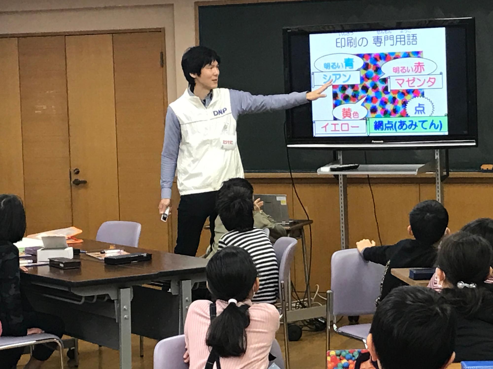 DNPでは、こうした活動は、単なる社会貢献活動にとどまらず、製品・サービスへのフィードバックや新たな開発のヒント、社員の自発性・積極性・社会的感度を育み、社員のいきいきとした働き方に寄与する活動であると考えています。 2012年からは、この「出張授業」を、次の社会を担う子どもたちが健やかに生まれ、育つことができる環境づくりに積極的に取り組むよう、厚生労働省が推進する「次世代育成支援対策推進法」の行動計画の施策の一環としても位置づけて、地域社会で展開しています。