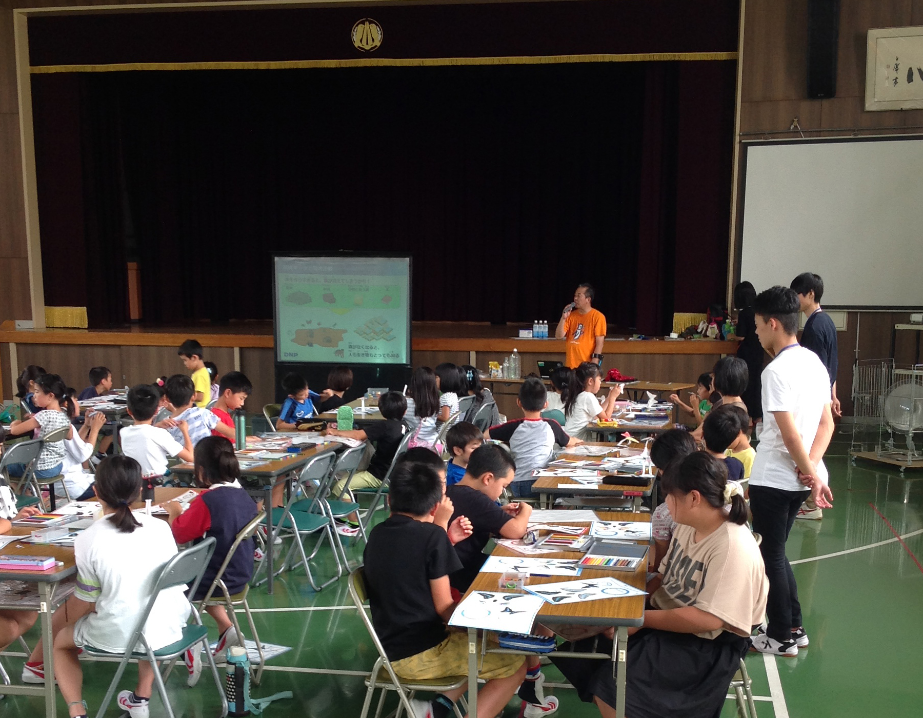 「次世代育成」テーマの柱は、子どもたちの知的好奇心を刺激し、学習への意欲を向上させることを目的とした「出張授業・ワークショップ」プログラムです。例えば、印刷の色表現のしくみを学ぶ「色の不思議」や、マルチメディア技術を活用して、新しい美術鑑賞を体験する「世界の美術で遊んじゃおう!」、世界最古の地球儀づくりを通じて文化遺産を後世に伝える大切さを学ぶ「世界最古の地球儀を作っちゃおう!」などのコンテンツを、社員が中心となり、全国の当社拠点近隣の学校や公共施設などで実施しています。