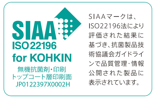SIAAは、適正で安心できる抗菌・防カビ加工製品の普及を目的として、抗菌剤・防カビ剤および抗菌・防カビ加工製品のメーカーや抗菌試験機関によって結成された団体です。SIAAは、ガイドラインに基づいて品質管理された製品に対してSIAA認証を与え、マーク表示を認めています。
