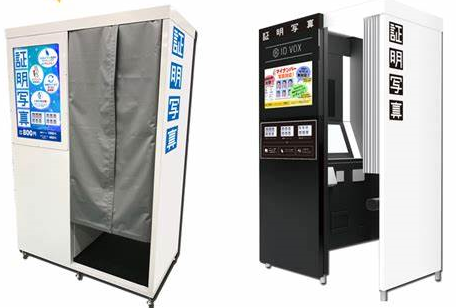 KJSの証明写真機(写真左・中)、DNPの証明写真機「Ki-Re-i」(スマートフォンへの画像データ送信も可能)(写真右)
