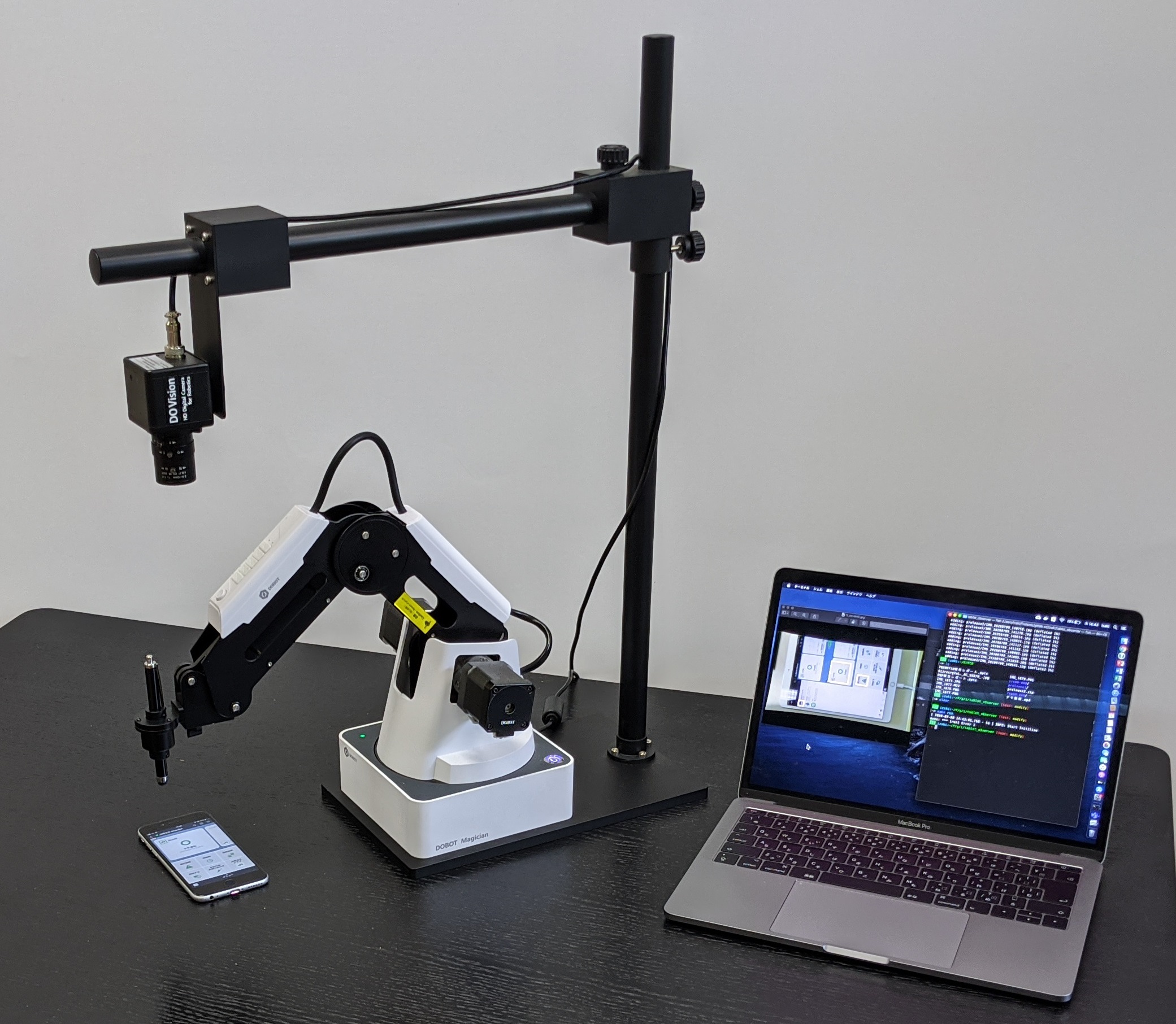 ロボットアームとスマートフォンを1台ずつセットで設置することで、監視サービスを稼働させることが可能であり、特別な設備や人員は必要ありません。