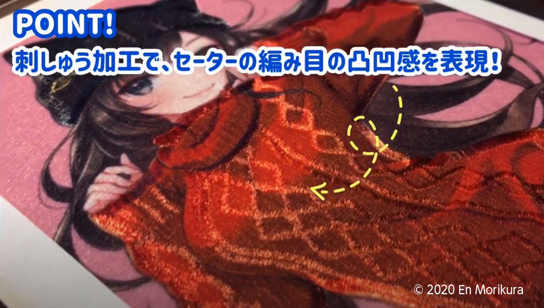 刺繍アートは、無地の布地に刺繍加工と昇華転写プリントを施した商品です。刺繍ならではの立体的な表現や温かみと、昇華転写による細やかで自在な色彩表現を掛け合わせることで、「思わず触ってみたくなる」ような、感性を刺激する独特の表現を実現します。