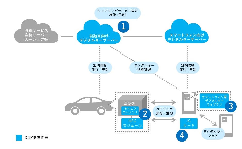 大日本印刷株式会社(本社:東京 代表取締役社長:北島義斉 資本金:1,144億円 以下:DNP)は、スマートフォンで自動車の施錠・解錠を行うデジタルキーの配信・管理のためのプラットフォームを提供します。