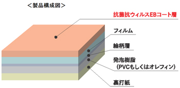 この2種類の壁装材は、DNPのコア技術であるEB(Electron Beam:電子線)テクノロジーにより、抗菌・抗ウイルス性能に加え、消毒用の次亜塩素酸ナトリウムやアルコールで拭いても絵柄が取れにくく、傷や汚れに強い性能も保有しています。