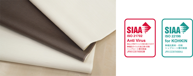 ・2020年9月:不燃PVC(塩化ビニル)壁装材でSIAA(抗ウイルス)認証を取得