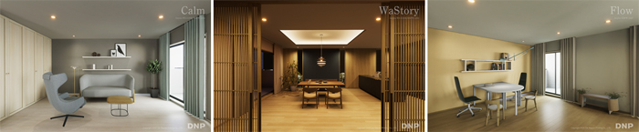 DNPは2020年7月に、自社の建具用化粧シートWSシリーズと床用化粧シートEB-Fシリーズの色柄を好みに合わせてシミュレーションできる「DNPバーチャルエクスペリエンス VRインテリアシミュレーター」のサービスを開始しました。これは、高精細な4K映像で、建具や床材の色と素材を瞬時に変更して表示できる、臨場感のあるVRシステムです。今回DNPは、このシステムで利用している「5 styles」のインテリア空間画像を背景画像用にまとめ、無償でのダウンロードを可能にしました。