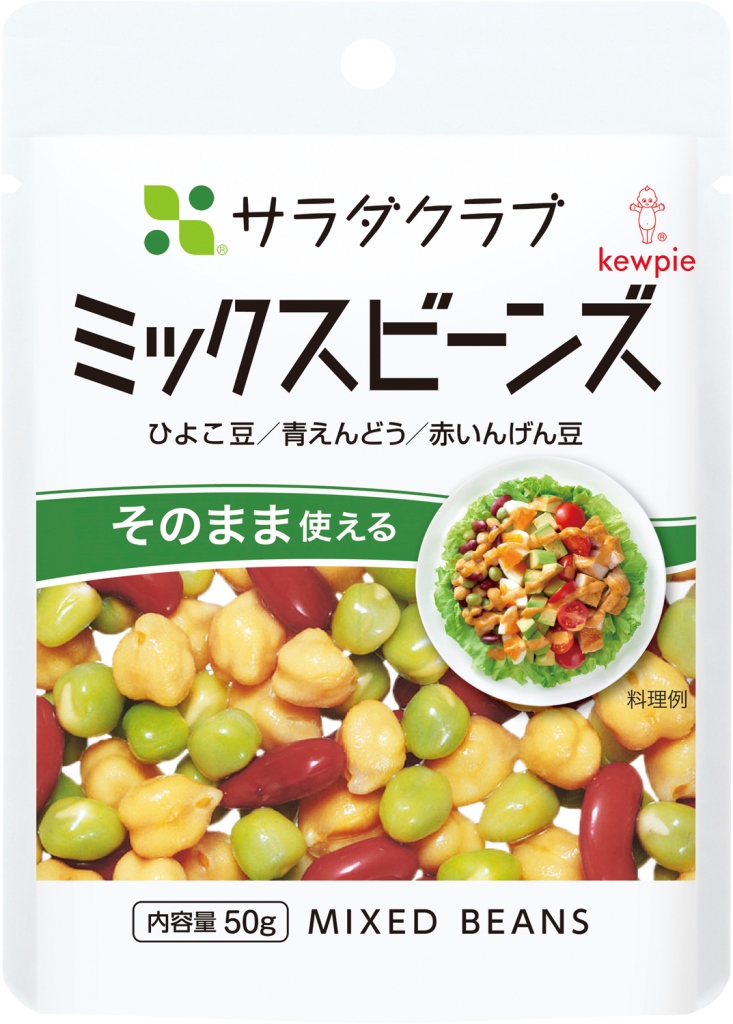 キユーピー株式会社「サラダクラブ ミックスビーンズ」(左)、日本盛株式会社「糖質ゼロプリン体ゼロ 2000ml」(右)