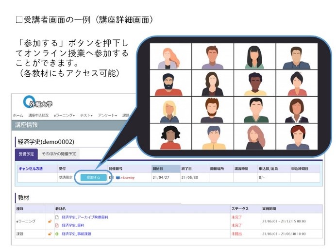 こうした課題に対して4社は、全国の社会人向け公開講座を管理するセカンドアカデミー社*1のサービスを活用し、大学の複数のオンライン授業・講座を一元的に管理でき、必要な情報を配信できるサービス「オンラインアカデミー」を開発して、提供を開始しました。