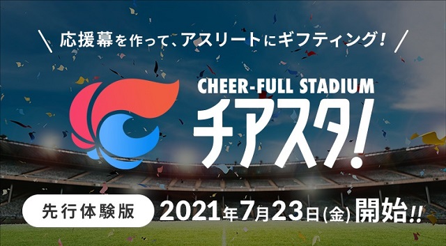 「チアスタ!」は、プロからアマチュアまで、多様な競技の個人アスリートやチームがプロフィールや目標を掲げ、その目標実現に向けた日々の練習や試合の結果などを発信し、各アスリート・チームを応援するサポーターとコミュニケーションできるWebサービスです。サポーターは、「チアスタ!」内にあるデザインテンプレートやスタンプ等のデジタルアイテムを組み合わせてオリジナルの「デジタル応援幕」を作成し、メッセージを付けてアスリートにギフトとして贈ること(ギフティング)ができます。先行体験版では、サポーターは、1日3回まで無料で「デジタル応援幕」をギフティングができ、アスリートへ応援の気持ちを届け、支援することができます。