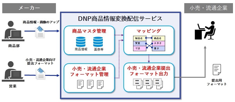 大日本印刷株式会社(本社:東京 代表取締役社長:北島義斉 資本金:1,144億円 以下:DNP)は、メーカーの商品情報を管理し、これらの情報を卸・小売・流通の各企業で異なるデータフォーマットに合わせて自動変換して提供する「DNP商品情報変換配信サービス LaConnect(ラコネクト)」*1の提供を開始します。