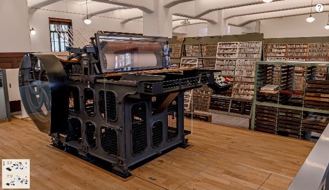 - 通常の「市谷の杜 本と活字館」の見学では立ち入ることができない印刷所エリアも、オンラインVRツアーではご覧いただけます。