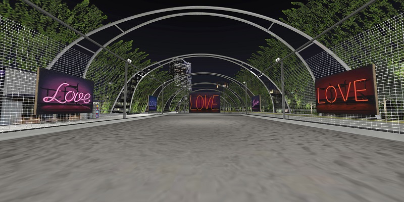 ○画家・横山奈美氏は、「LOVE」の文字が光るネオン管を描いたシリーズ作品を展示し、リアルな展覧会会場では観ることができない絵画の裏側にも回り込める仕掛けを盛り込んでいます。