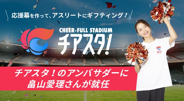 また、「チアスタ!」サービスのアンバサダーとして、ロンドンオリンピック、リオデジャネイロオリンピックの新体操団体日本代表の畠山愛理氏を迎え、アスリート・競技団体とサポーターとのさらなるコミュニケーションを支援します。