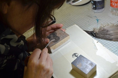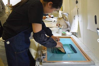 左:版画ワークショップ「木口木版画講座」、右:版画ワークショップ「シルクスクリーン講座」