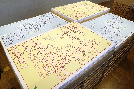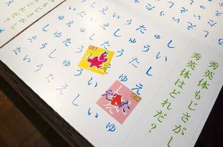 秀英明朝は、例えば平仮名の「い」が1画である(つながっている)といった特徴を持っており、一筆書きになっている秀英明朝の平仮名を組み合わせた「文字の迷路」をポスターにして展示します。(ポスターはお持ち帰りいただけます。)