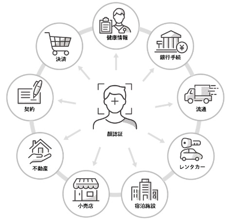 本人の同意を得て登録した顔画像データを共通のサーバーに蓄積し、業界横断的にオープンに活用することで、日常生活のさまざまな場面で「手ぶらで」「スピーディに」サービスを利用できる環境の構築を目指す。