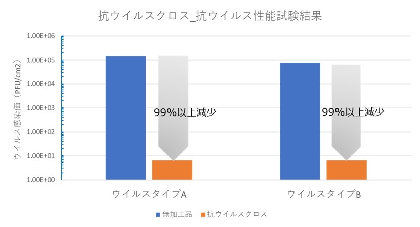 ウイルスのタイプA/タイプBともに、24時間後にウイルス数が99%以上減少させることを確認しています。