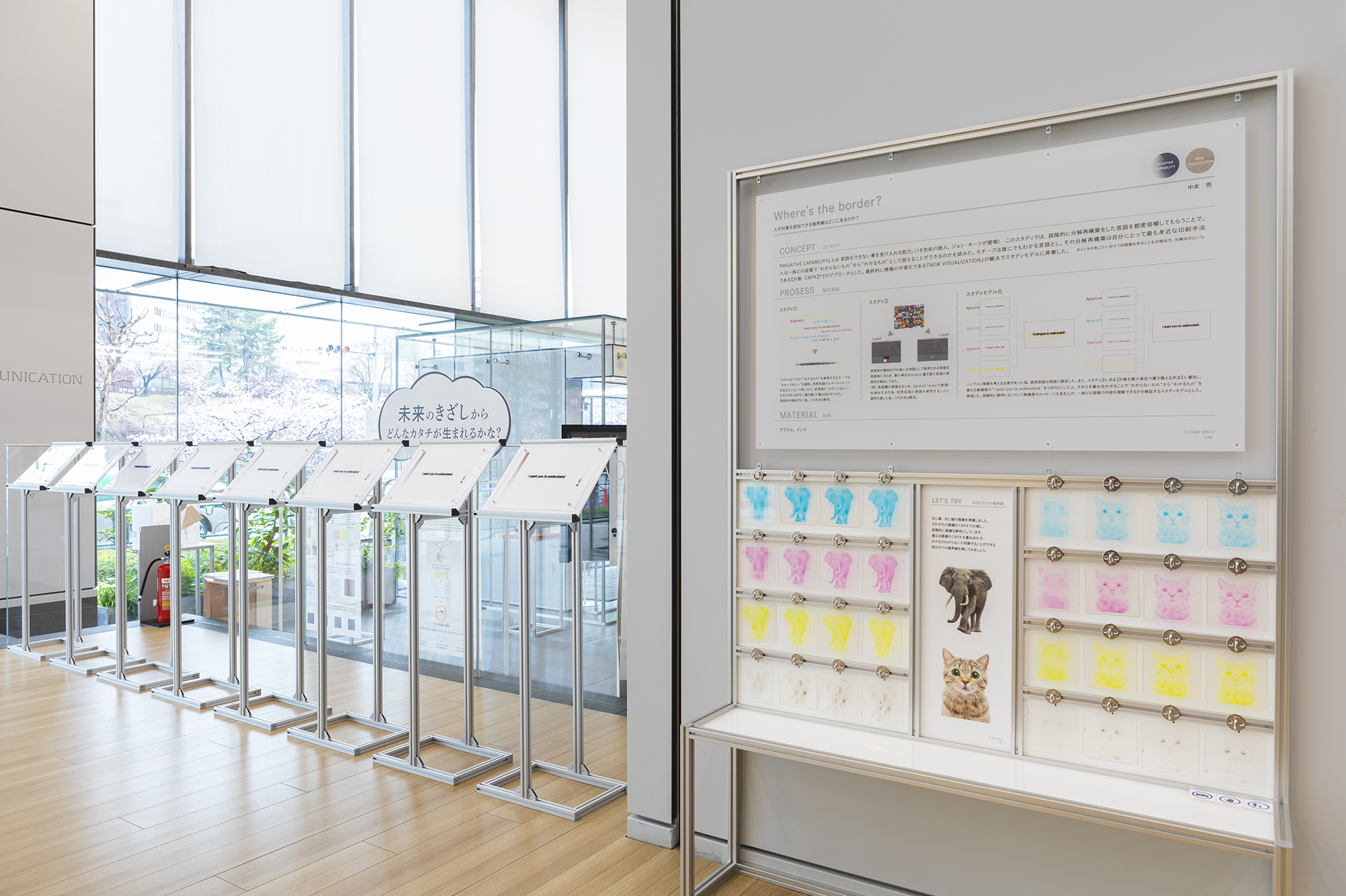 最適な手法の企画・設計から最適な製品・サービスの開発等につなげる「デザイン」の視点に立って、広く社会課題やクリエイティブトレンド等を見つめ、従来のあたりまえに「問い」を投げかけることで生まれる変化やズレを「未来のきざし」として抽出し、その思考の過程とともに展示します。