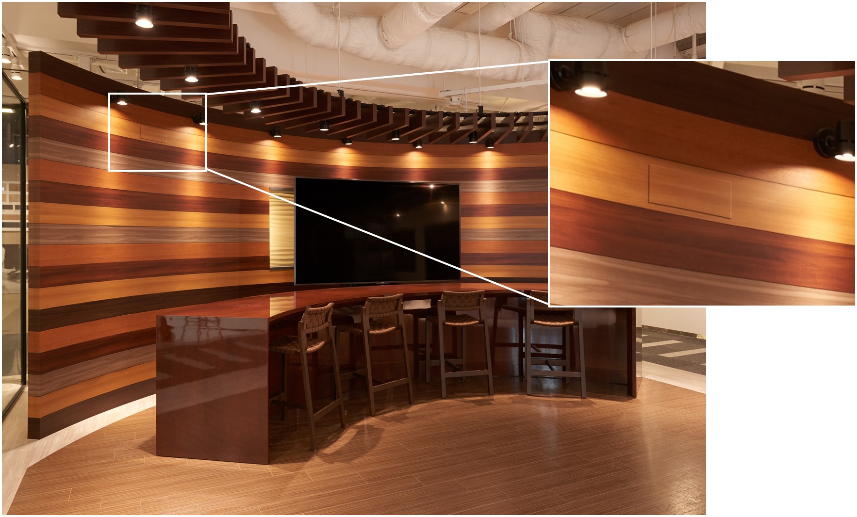 - 木目調などの意匠性を付与することにより、景観を損ねることなく設置することができます。