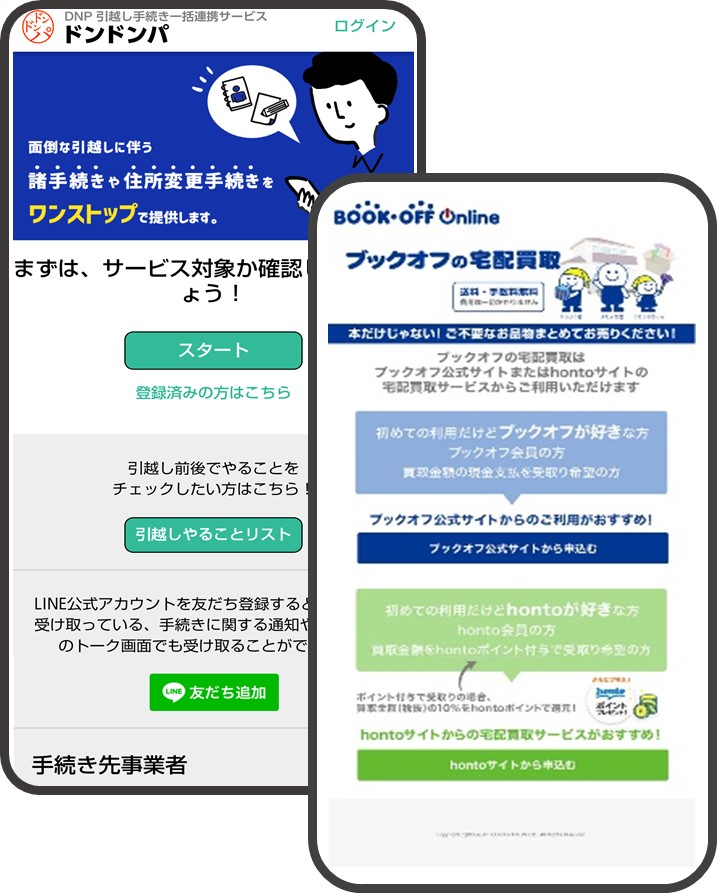 大日本印刷とブックオフ 「DNP引越し手続き一括連携サービス ドンドンパ」と宅配買取サービスを連動