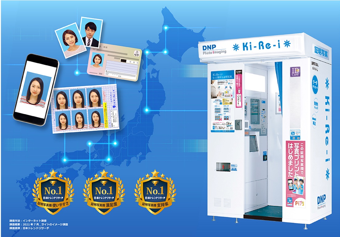 - 日本では近年、人口の減少に加え、スマートフォンのカメラ機能の向上などによって気軽に顔写真を撮影できることなどから、証明写真機の需要が徐々に減少しています。こうした状況に対してDNPは、全国に設置している「Ki-Re-i」の用途を拡大して、マイナンバーカードのオンライン申請や、各地の「Ki-Re-i」で撮影した顔写真を社員証用にネットワークで収集するといった多様なサービスを提供しています。
