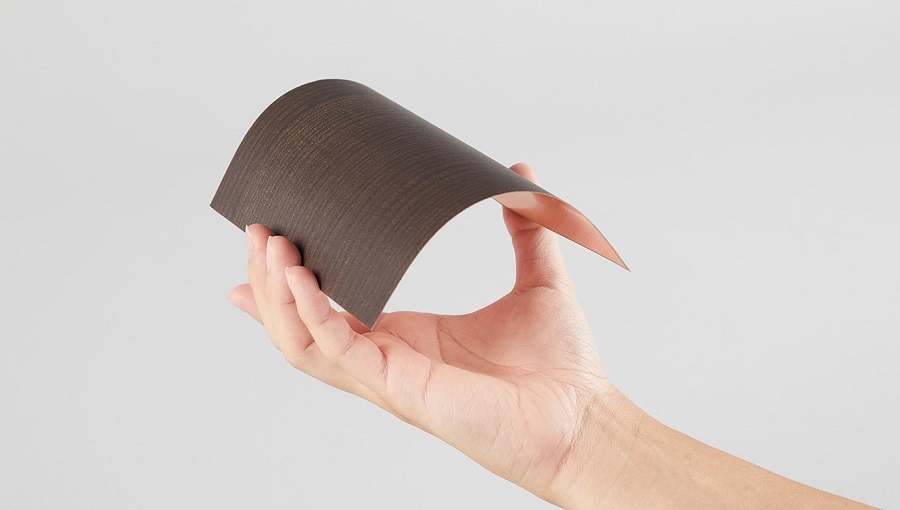 木目調の建具用シートを貼り合わせた電波吸収シート (上)ミリ波帯用、(下)Sub6帯用