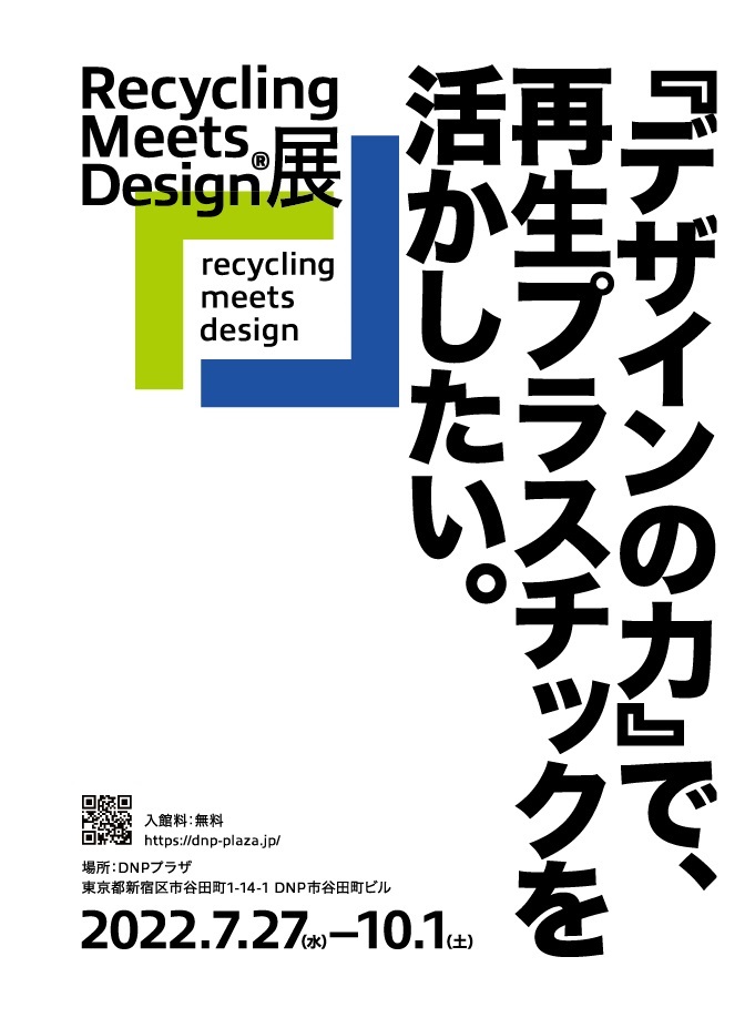 大日本印刷株式会社(DNP)は、プラスチックパッケージのリサイクル促進を目指す、デザイナーとの共創プロジェクト「Recycling Meets Design® Project*1」を2020年から実施しています。今回、2022年7月27日(水)~10月1日(土)に、企画展「Recycling Meets Design展 『デザインの力』で再生プラスチックを活かしたい。」を開催します。DNPが運営するオープンイノベーション施設「DNPプラザ」(東京都新宿区)を会場とし、デザイナー・リサイクラー・エンジニア等のメンバーが自らの経験も踏まえて取り組んできた、「デザインの力」を活かした再生プラスチックの新たな利活用のアイデアを展示します。
