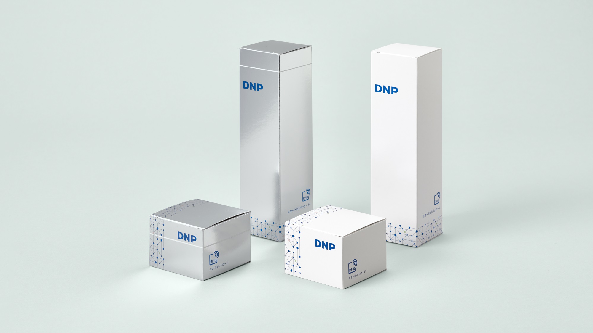 小売・流通業では、商品1点1点の個体識別と管理などを行うため、RFID(ICタグ)に長年期待が寄せられていますが、各商品への実装(ソースタギング)に人手やコストがかかることが課題とされていました。この課題解決に向けて、DNPはパッケージの製造段階でRFIDをあらかじめ実装し、サプライチェーンでやり取りされる各種情報との連動を可能にする「RFID一体型パッケージ」の開発を進めています。RFIDの通信用アンテナをパッケージ形状に合わせて設計することで、デザイン性を損なわずに実装が可能であり、読み取り性能を向上させる特長・メリットがあります。