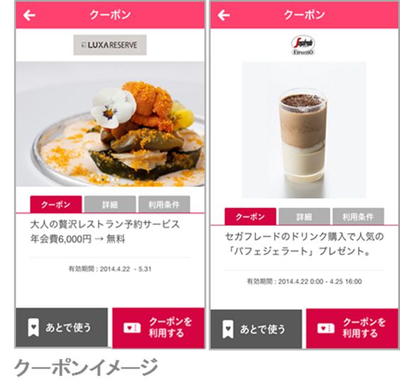「銀座・今日・スイーツ」や「丸の内・今週末・イベント」などの“お好み”を設定することで、その条件にマッチしたお得情報をチェックすることができます。