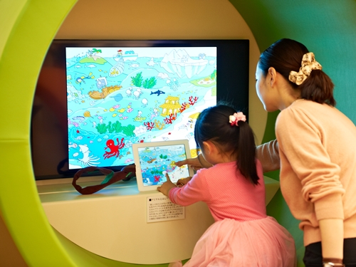 商業施設のキッズスペースなどにデジタルえほんを導入し、子供連れ客の来店を促進
