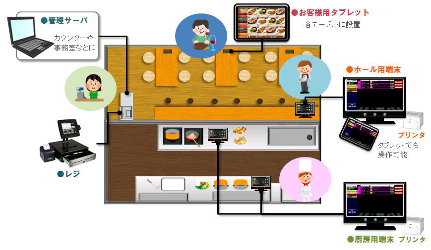 300万円~(管理サーバー、ホール用・厨房用端末3台、タブレット端末10台、レジ、プリンタ、NW機器を含む) |