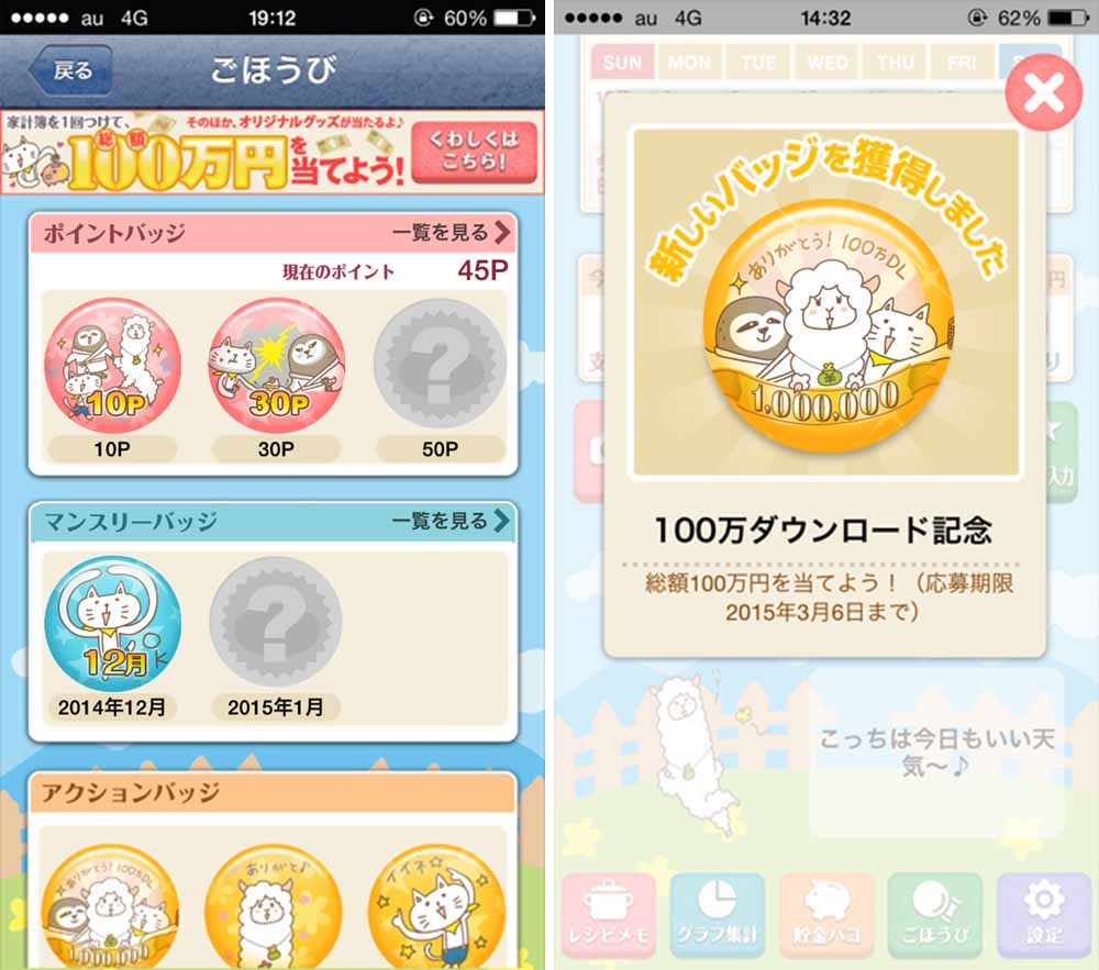 【家計簿を続けたいという利用者のモチベーションをアップさせる「ごほうび」機能】