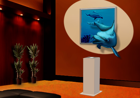 ■壁面タイプ:製品などの立体形状をしたレリーフを施したパネルなどを壁に掛け、そのパネルや壁面に映像を投射します。投射する映像サイズは80インチ以内で、パネルや投影用プロジェクター、再生機がセットになっています。レリーフを施した立体のパネルと投影する約2分の3DCG映像を制作します。展示会などで自社製品の内部構造を画像で紹介するなど、表面上では見えないものを可視化できます。