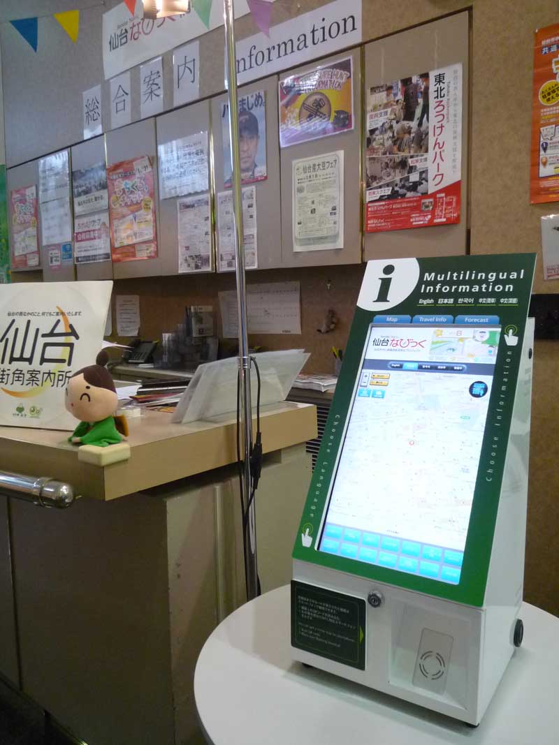 仙台市では3月以降に複数の大規模な国際会議の開催が予定されており、世界各地から多くの外国人の来日が予想されます。DNPはすでに、仙台空港(国際線到着ロビー)と仙台駅(i-ステーション仙台)にWillSmartを導入して運営していますが、今回新たにWill Smartの小型タイプ(表示画面20インチ)を仙台市内の複数箇所に設置して、訪日外国人向け情報サービスの実証実験を開始します。