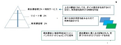 この状況に対してエムズは今回、日本で唯一のポイントサービス専門のコンサルティング会社としての独自調査や支援実績に基づき、ポイント還元率アップの特典に加えて、経営戦略上効率的かつ効果的になるよう、最適なステージの区切り方の設定、企業の目的に合った各ステージの特典やインセンティブの内容を会員の好感を得ると同時に、適切なコスト配分で実現できるように提案する手法を開発しました。