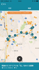 2 滞在中 : GPS(全地球測位システム)機能を利用した本アプリを起動させてコースを歩いていると、画面上に「よりみちしませんか?」というメッセージとともに、現在位置近くのお奨め“よりみちスポット”の情報が表示されます。