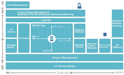 IoT関連の製品やサービスには、情報セキュリティに守られた通信環境や対応機器の開発・運用など、広範囲で多岐にわたる機能が必要であり、ひとつの企業が全てを開発するよりは、複数の企業が強みを融合させ、機能を補い合うことが重要です。しかし、その際、「機能や要素ごとに多くの企業と協業すると、各社の技術の理解や役割分担の調整などの負荷が高くなる」「必要な機能や要素の選定を1社に任せると、公平性に欠けた選定への懸念やコスト増などにつながる恐れがある」といった課題がありました。