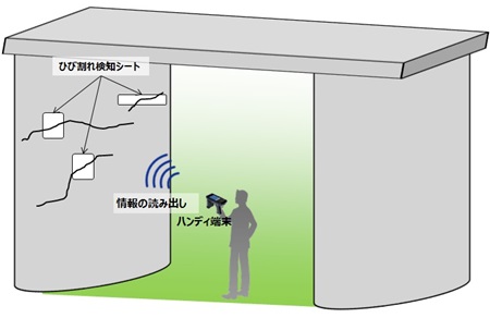 ICタグ(RFID)を使用し、正確にひび割れの拡大を検知