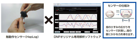 DNPはパッケージ評価に特化したオリジナル解析プログラムと触動作センサーを組み合せることで使いやすさに影響を与えている要因を数値データによって特定し、使用行動のどの部分に問題があるのかを明らかにしパッケージの開発、改善を進めています。「DNP易解体液体紙容器」の評価にも同手法を適用し、容器の天部の開封にかかるエネルギーを計測したところ、易開封加工を施した本開発品は、従来品より60%少ない力で開封ができ、牛乳パックとほぼ同等の力で開封できることが確認できました。