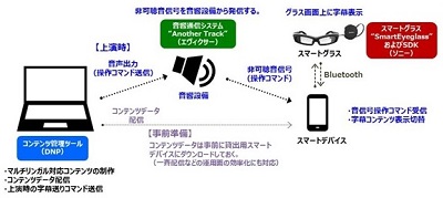 DNPは、視覚コミュニケーション情報設計の技術・ノウハウとスマートグラスを活用し、舞台から目を離さずに内容が理解できるARによる鑑賞ガイダンスシステムを開発しました。2016年7月に行った実証実験*の利用者アンケートでは、回答者の97%が「舞台の内容が理解しやすくなった」と回答しました。そこで今回新たに、ソニーセミコンダクタソリューションズ株式会社とエヴィクサー株式会社の協力を得て、実用化に向けてシステムを改良し、実証実験を実施することとしました。