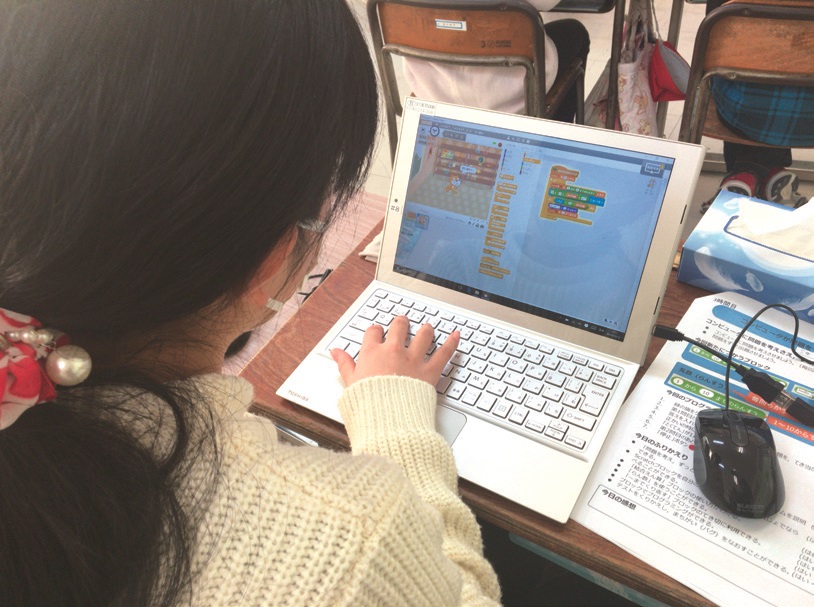 ○ イギリスのプログラミング教育用学習教材「Switched on Computing」を利用して、Programming at School研究会の協力のもと、小学校でのプログラミング教育と教材の在り方について検討を行うと共に、2年間に15校で195時間の授業を行う研究を実施しました。この研究を通じて確認した小学校の実情を踏まえ、プログラミング授業の経験がない先生でも、既存のICT環境で円滑に指導を行えるよう、先生のためのツールやサポートを充実させました。
