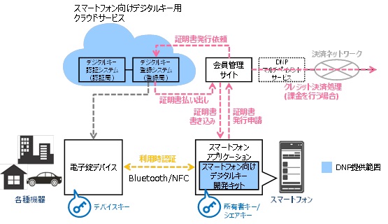 大日本印刷株式会社(本社:東京 社長:北島義俊 資本金:1,144億円 以下:DNP)は、自動車や家、宅配ロッカーなどの各種シェアリングサービスやIoT機器の利用者認証用デバイス向けに、実際の鍵の代わりにスマートフォン(スマホ)アプリで電子鍵(デジタルキー)を提供し、鍵の開閉を行えるサービスのプラットフォームを開発しました。