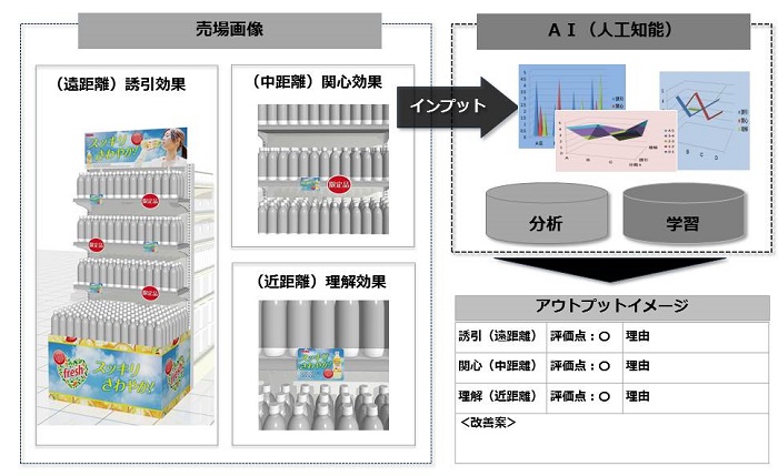 大日本印刷株式会社(本社:東京 社長:北島義俊 資本金:1,144億円 以下:DNP)は、AI(人工知能)を活用し、商品の陳列方法やPOPといった演出などをチェックして、店舗の売場を評価するサービスを開発し、本年4月に開始します。