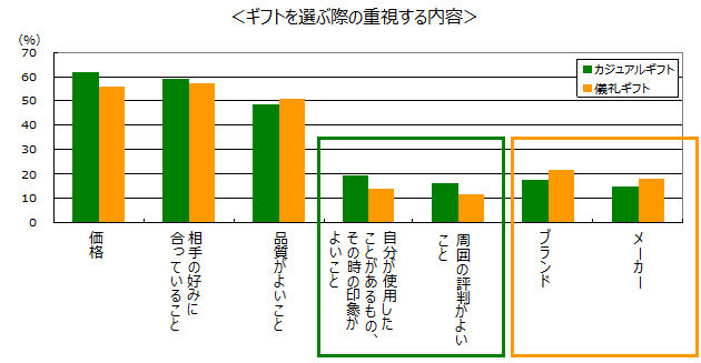 ■カジュアルギフトは使用経験や評判、儀礼ギフトはブランドやメーカーを重視 <グラフ3参照>